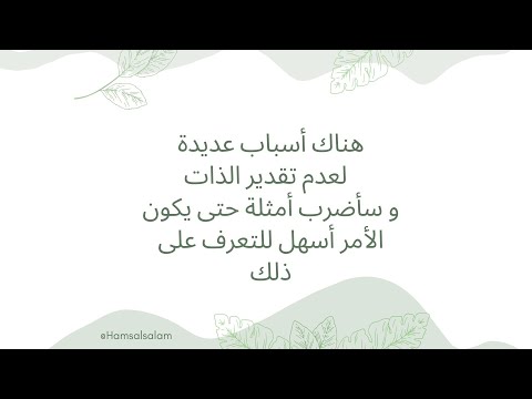 هناك أسباب عديدة لعدم تقدير الذات و سأضرب أمثلة حتى يكون الأمر أسهل للتعرف على ذلك